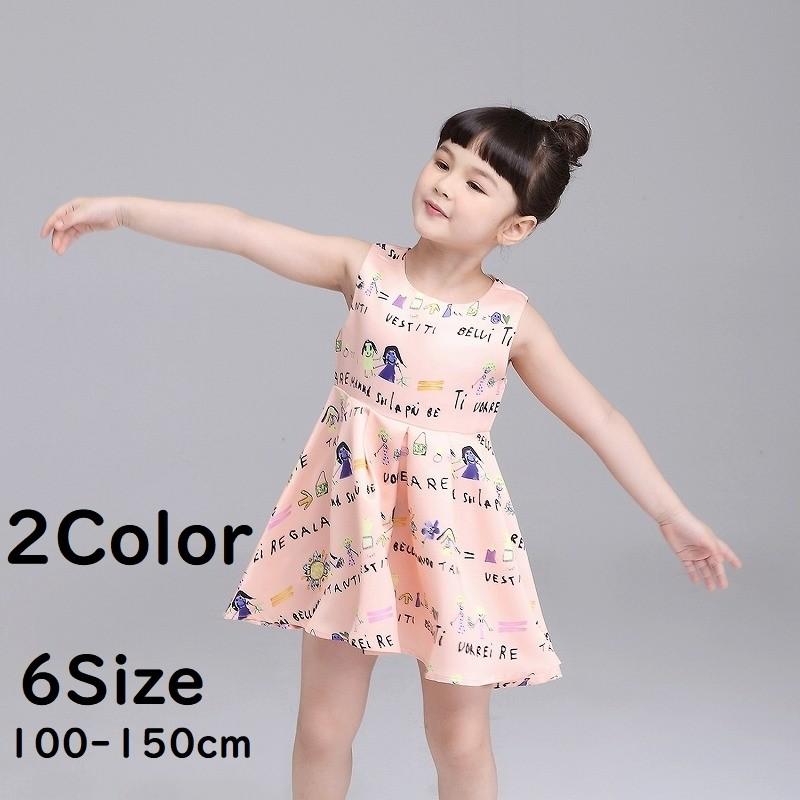 ワンピース キッズ 女の子用 ノースリーブ ミニ ミニワンピ フレア かわいい おしゃれ ロゴ イラスト お出かけ 春夏 ピンク プラスナオ Paypayモール店 通販 Paypayモール